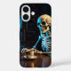 Hilarious skeleton working late at a computer with coffee in hand. Perfect mix of spooky and modern life humor for Halloween season.