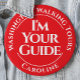 I'm Your Tour Guide. A badge for an official City Tour Guide. Change the wording to your company details. Town Tour Guide badge. Official City Tour Guide badge. Travel and tourism. White wording on a red background.