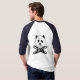 Original PandaBread logo design printed on a men’s shirt with panda face, two baguettes, and text printed on the front and logo on the back.