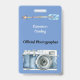 Official Photographer with vintage camera. Blue camera on front, colorful camera on back.