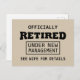 officially retired under new management holiday postcard
