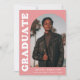 Stylish and trendy graduation announcement featuring the graduate's photo on the front with an offset arch photo frame. "Graduate" is displayed in bold white retro lettering on a rose pink background. Personalize the front of the arch photo graduation announcement by adding the graduate's name, school, and graduation year. The card reverses to display an additional 3 photos with space for custom text such as future college plans, career plans, graduation party details, etc. The pink graduation announcement is perfect for both high school and college graduates.
