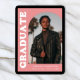 Stylish and trendy graduation announcement featuring the graduate's photo on the front with an offset arch photo frame. "Graduate" is displayed in bold white retro lettering on a rose pink background. Personalize the front of the arch photo graduation announcement by adding the graduate's name, school, and graduation year. The card reverses to display an additional 3 photos with space for custom text such as future college plans, career plans, graduation party details, etc. The pink graduation announcement is perfect for both high school and college graduates.