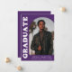 Stylish and trendy graduation announcement featuring the graduate's photo on the front with an offset arch photo frame. "Graduate" is displayed in bold white retro lettering on a purple background. Personalize the front of the arch photo graduation announcement by adding the graduate's name, school, and graduation year. The card reverses to display an additional 3 photos with space for custom text such as future college plans, career plans, graduation party details, etc. The purple graduation announcement is perfect for both high school and college graduates.