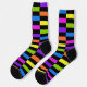 Offset Blocks, Black and Bright Colors Geometric Socks