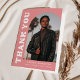 Stylish and trendy graduation thank you card featuring the graduate's photo on the front with an offset arch photo frame. "Thank You" is displayed in bold white retro lettering on a rose pink background. Personalize the front of the arch photo graduation thank you card by adding the graduate's name, school, and graduation year. The inside of the card provides space for your typed or handwritten message. The back of the pink graduation thank you card features a 3 photo collage.