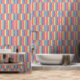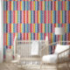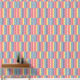 pattern within pattern of rainbow stripes offset by half to make a new pattern