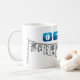 Caneca de Ogum com achaba. Nome de Ogum no texto com design do conchas. Impresso em três cores; verde, preto e cinza.