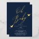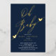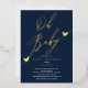 Gold Foil baby shower invitation featuring a modern script set on a dark blue background. Flip our modern invitation over to view a coordinating back.
