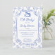 Oh baby blue rocking horse sketch baby shower invitation