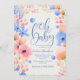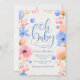 A watercolor baby shower invitation with blue, pink and peach flowers against an off-white background. Perfect for spring or any time of the year. (<a href='https://www.freepik.com/free-vector/baby-shower-invitation-in-watercolor-style_1747052.htm'>Designed by Freepik</a>). <br/><br/>The card is easy to customize with your wording, font, font color and choice of six paper types.<br/><br/>Not exactly what you're looking for? All our products can be custom designed to meet your needs at no extra charge.<br/><br/>Simply contact us at askcottonlamb@gmail.com<br/><br/>Coordinating products available: