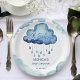 Oh Baby cloud baby shower template plates personalized tableware decor cute watercolor blue clouds with raindrops baby shower personalized plates