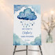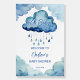 Oh Baby cloud baby shower template welcome sign board, cute watercolor blue clouds with raindrops baby shower welcome board