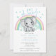 Oh Baby Cute Elephant Rainbow Blue Baby Shower Invitation