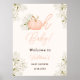 Oh Baby! A boho-inspired baby shower welcome poster, featuring cute and charming pastel pink pumpkin and white floral watercolor with pink, fall Halloween Pumpkin with white flowers bouquet on pastel pink. The modern brush script adds a touch of elegance to these unique signs that are perfect for any boho fall or Halloween-themed celebration., perfect for outdoors and garden party.