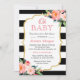 Oh Baby Shower Modern Floral Gold Frame Stripes Invitation