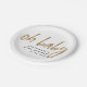 Modern and simple paper plate for your baby shower party. The large font on the design says "oh baby" in faux gold glitter. Customize this product by adding the mommy-to-be's name and event date. This design works for both baby girls and boys.