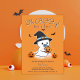 Looking for a fun way to celebrate your baby boy on the way? This adorable Halloween baby shower invitation features a sweet baby ghost holding a smiling pumpkin, complete with a blue pacifier and witch hat, surrounded by jack-o’-lanterns and flying bats. Perfect for moms-to-be who love autumn celebrations, this invitation sets the tone for a festive and spooky baby shower. Use it for October gatherings, themed baby showers, or fall family parties. Guests will love receiving this playful invite that mixes Halloween charm with baby shower joy, making it a special keepsake to remember the occasion.
