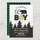 Oh Boy Bear Buffalo Plaid Baby Shower Invitation
