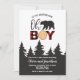 Oh Boy Bear Red Buffalo Plaid Baby Shower Invitation
