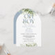 Oh Boy Botanical Greenery Dusty Blue Baby Shower Invitation