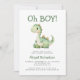 Oh Boy Cute Green Dinosaur QR Code Baby Shower Invitation