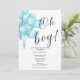 Oh boy modern eucalyptus blue balloons baby invitation