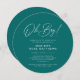 Oh Boy Modern Round Script Teal Baby Shower Invitation