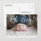 Oh Boy! Modern Script Baby Boy Photo Birth Announcement Postcard