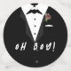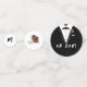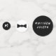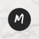 Design on large confetti features the look of a tuxedo as background to the words, "Oh Boy!" Text is customizable and may be replaced with a name or other wording. Reverse is black and displays name for baby in white. Medium sized confetti design features image of a black bowtie against white background. Opposite side bears image of burgundy-colored boutonniere. Design on small confetti features black background to monogram for Babyin white lettering on one side, colors reversed on opposite side. Designed to coordinate with the "Oh Boy, It's a Boy!" Baby Shower collection.