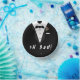 Design features the look of a tuxedo as background to the words, "Oh Boy!" Text is customizable and may be replaced with a name or other wording. Designed to coordinate with the "Oh Boy, It's a Boy!" Baby Shower collection.