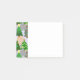 This Post-It notepad has a design of Christmas trees in various shades of green, pink, silver, and gold with different decorations.