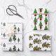 This holiday pattern theme is all about the Christmas tree. On the first sheet there are three evergreen trees with the words, SEASONS GREETINGS. The second pattern is made up of a contemporary design, with text that reads "Oh Christmas Tree". The third pattern is a vintage car with a Christmas tree.