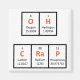 This is a magnet constructed using the elements on the periodic table with images of the electron shells of individual elements to spell out the phrase, "oh crap."