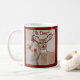 Watercolor painting and colored pencil drawing. Deer are beautiful, graceful, and quiet. In Michigan we have a lot of deer. I felt like drawing this deer and placing it pretty red flowers. May this design help you to remember to go out and enjoy what's in the natural world, as you use this mug.