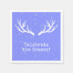 Holiday party napkins with a deer in snow design on a purple background. You can customize the napkins with your own message. Matches other items in a complete party set.