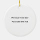 Lightweight, smooth, pure white ornament with nice sheen. Perfect size to be seen from across the room ... and to attract closer inspection! Price was great for ordering enough for the whole family! Clear, bold black design just as requested. Matches the order exactly. Just so nice!