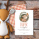 Cozy autumn watercolor design featuring modern handwritten style script, cute sleeping baby deer and plaid pattern on the back. The text can easily be personalized for a unique one of a kind design for your special day.