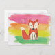 Funny Oh for fox sake design with a cute cartoon fox with fixed text on a pretty, colorful watercolor stripes background.