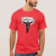 My 11 yo wore adult XL (5’7” 165#). The 8yo is small framed. She wore adult small and tied it in the back. Grandma wore adult large with long sleeve shirt underneath. Tall girl adult medium. Dark haired male adult large. Good quality dark Heather gray, Gildan brand shirt. -it was next up from basic choice and cost about $20 per shirt. Not too thick or thin. Washed and dried well, no major shrinkage. Not see-through. Can wear a bra under it fine. Screen print is just as shown and well done, front and back.