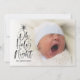 Holiday Birth Announcement featuring modern calligraphy script and a shining star that has a brushed texture appearance. Personalize with your own photo and text on the front and back. The back has a light blue snowflake pattern with the same brushed texture appearance and goes with the holiday winter theme. Be sure to visit the shop for more items like this.
