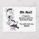 This hilarious postcard features a man in a suit sitting in a chair. The man just realizes he forgot to get a Valentine's Card for his sweetheart and he is screaming, "Oh No!! I forgot to get you a card for Valentine's Day! You still love me, Right?!" His mouth is open, his tongue is flapping, and his nervous perspiration is flying off of him as he flies backward in his chair with wheels. This funny postcard is sure to help with forgiveness.