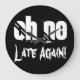 Oh No Late Again Time Quote Typography Funny Black and White Home Decor White on Black Round Wall Clock, you can change the text