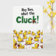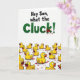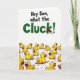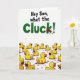 This card features a high-contrast digital illustration on a bright white background, mixing cute cartoon styling with a dark joke. Across the top, a casual phrase is set in thick lettering, mostly black with a punch of green, and the final mark is interrupted by a dramatic red splash. Below the text, the scene is packed with many small yellow bath-toy birds, each with rounded shapes, orange beaks, and wide eyes that seem to glance around at one another like startled friends. Their surprised expressions and clustered spacing create a sense of shared “did you see that?” energy, like a group reacting together in the same moment. Red splatters and small puddles spread across the white surface between them, echoing the red burst near the top line and adding a jarring contrast to the sunny yellow. A few of the toy birds have red marks on their smooth bodies, and one near the center shows a single vertical drip that draws the eye downward. The overall palette stays mostly white, yellow, black, green, and red, with crisp edges and flat color that make every shape easy to read, and a small 🌷 tucked near the lower area. One prominent yellow bird sits forward in the crowd with a bright orange beak, wide circular eyes, and a thin red streak running straight down its front.
