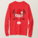 Ugly Christmas sweater (t-shirt) with a cute reindeer with a red Santa's hat and a white nose. You can customize the red script Ho Ho Ho text.