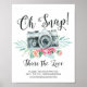 Oh Snap Hashtag Wedding Sign featuring a modern font with a gray camera with floral accents. Easy to change the size & customize with your information. Change the background color by using our color picker.