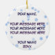 Lightweight, smooth, pure white ornament with nice sheen. Perfect size to be seen from across the room ... and to attract closer inspection! Price was great for ordering enough for the whole family! Clear, bold black design just as requested. Matches the order exactly. Just so nice!
