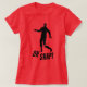 A zombie with his left leg snapping off at the knee while trying to take a step. Below the zombie is the phrase "Oh Snap!" The background color can be changed when "customizing" this product. When customizing click on the word "edit" then click on "background" then choose color.