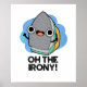 Oh The Irony Funny Iron Pun features a cute clothes iron. Perfect pun gift for family and friends who love cute ironic iron puns.