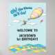 Celebrate your baby boy's first birthday with this super cute customizable "Oh, the Places He'll Go" welcome sign. Personalize with your son's name and age.